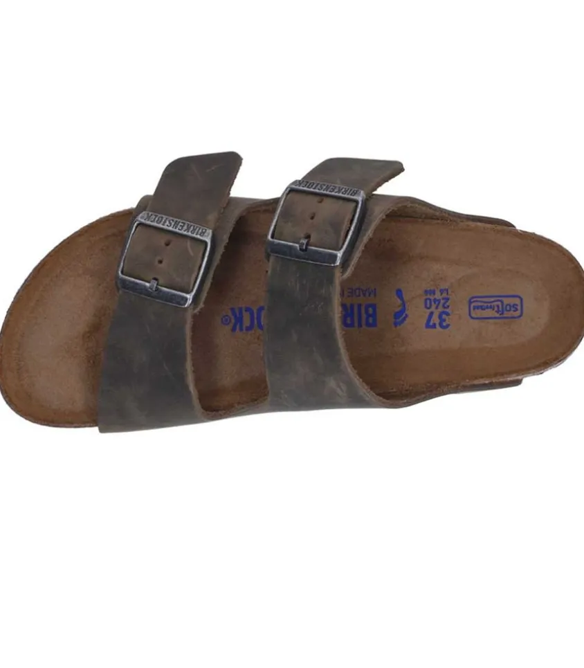 Modèle Emblématique De La Marque, Les Sandales Arizona Signées Birkenstock Se Parent Du Coloris Faded Khaki Et D’Un Cuir Nubuck Huilé Afin D’Offrir Confort Et Style. Deux Brides Réglables À Boucle Ardillon En Métal, Signature Du Modèle, Complètent Le Tout.