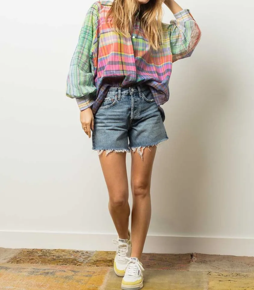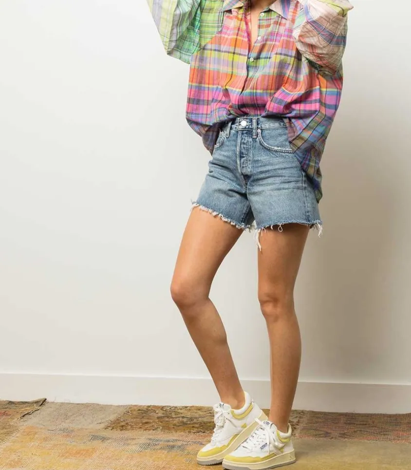 Short Parker Vintage De La Marque Agolde, Un Modèle Aux Allures Rétro Avec Sa Coupe Longue Et Légèrement Evasée Et Ses Bords Francs Sur Le Bas.