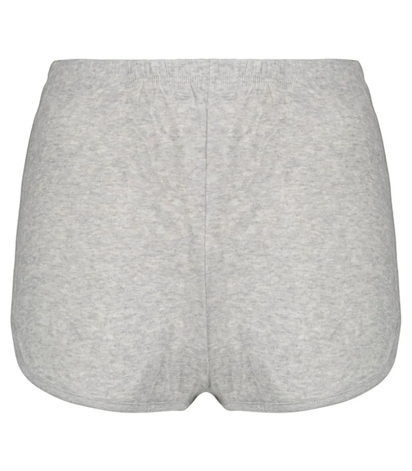 Short Confortable Pour Femme Ruzy Gris Clair Chiné De La Marque American Vintage. Esprit Sportswear Avec Petits Bords Arrondis Et Petites Fentes Sur Les Côtés. Ceinture Fine Élastiquée.