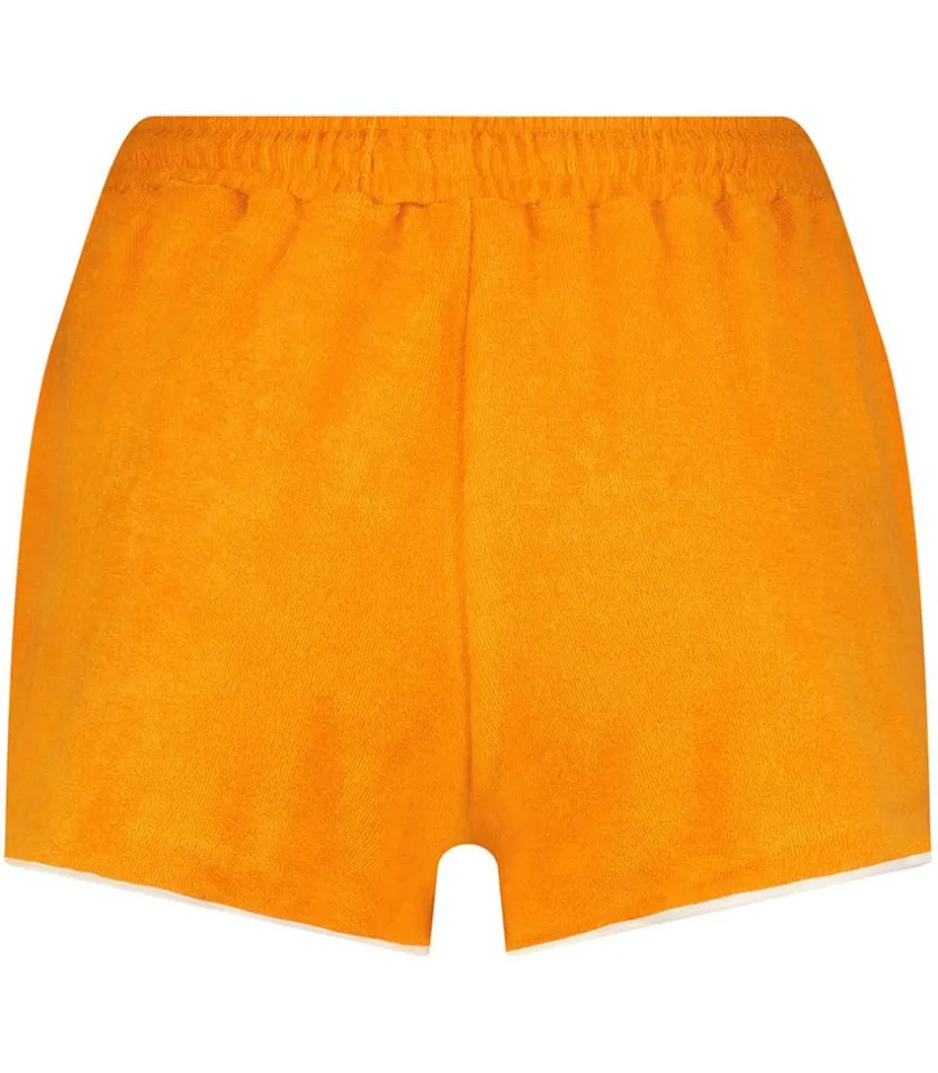 Short Salvador Orange De La Marque Welcome Bob, Un Mini-Short Conçu Au Portugal En Coton Biologique Qui Se Distingue Par Son Coloris Orange, Pétillant Et Estival. On L’Associe À Un Tee-Shirt Blanc Et À Une Paire De Sandales.