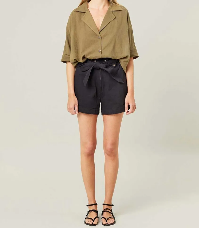 Léger Et Pratique, Le Short Noir Trench Coat De La Marque Maison Julien Permet D’Être Ajusté En Longeur Grâce À Des Pattes De Boutonnage.