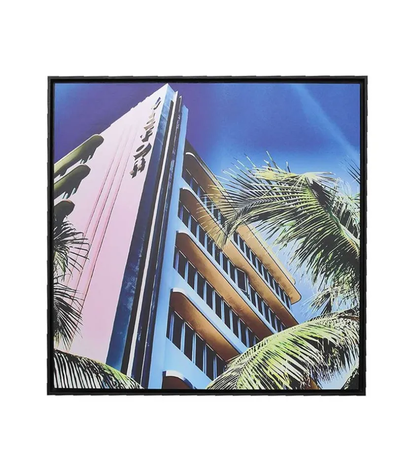 Tableau L’Iconolâtre Référence 0062 Édité Par Image Republic, Une Illustration Rétro & Colorée Représentant Un Hotel Et Des Palmiers.