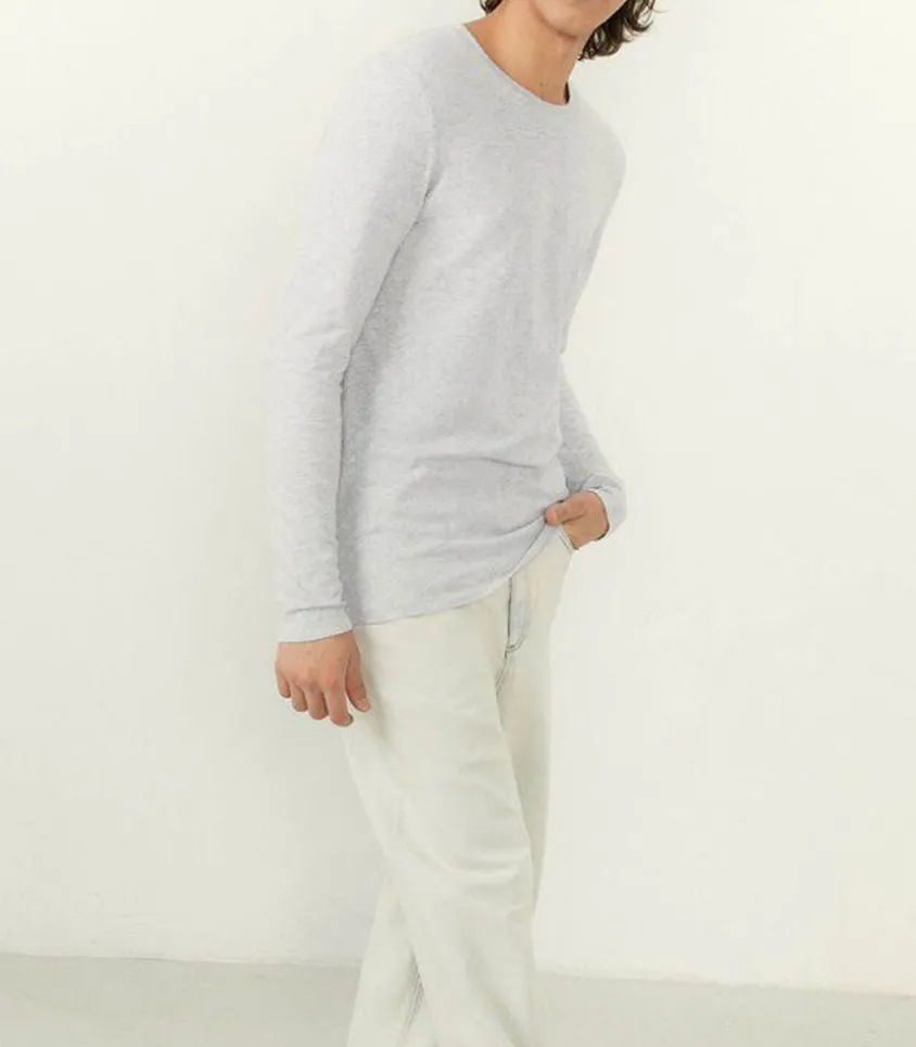 Tee-Shirt À Manches Longues Homme Bysapick Polaire Chiné De La Marque American Vintage, En Coton Doux Flammé, Confortable Et Chaleureux.