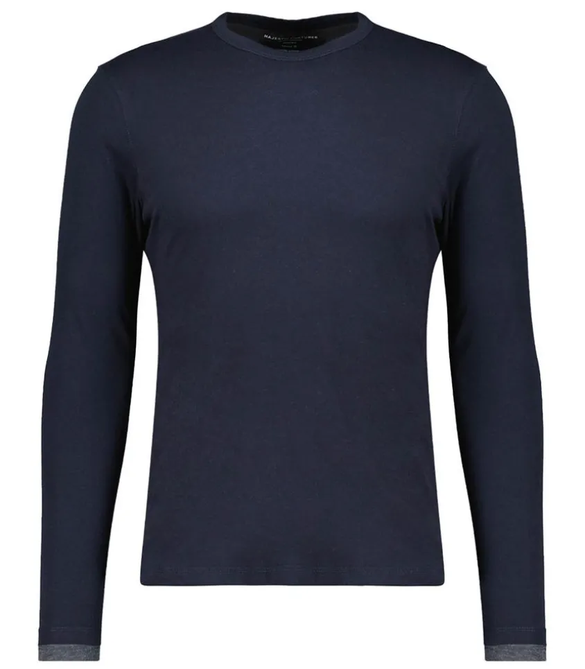 Tee-Shirt Homme Col Rond Manches Longues Coton Marine. Véritable Incontournable Du Dressing Homme. Se Porte Facilement À Toutes Les Saisons, Seul Ou Accompagné D’Un Pull.