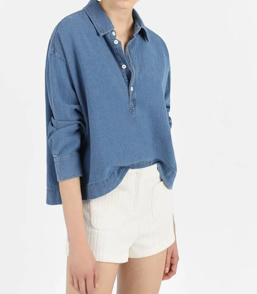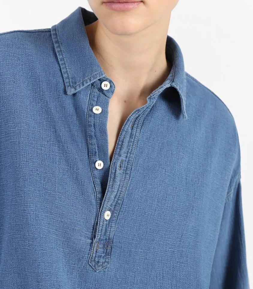 Le Top Mondo Washed Denim Est Un Haut À Manches Longues Conçu À Partir De Coton Japonais De Haute Qualité. Sa Coupe Droite Offre Une Silhouette Élégante Et Polyvalente, Adaptée À Diverses Occasions. Le Tissu En Denim Lavé Confère Au Top Une Texture Douce Et Un Aspect Légèrement Vieilli, Ajoutant Une Touche De Caractère Et De Style. Ce Top Est Un Choix Idéal Pour Celles Et Ceux En Quête D’Un Vêtement À La Fois Tendance Et Intemporel.