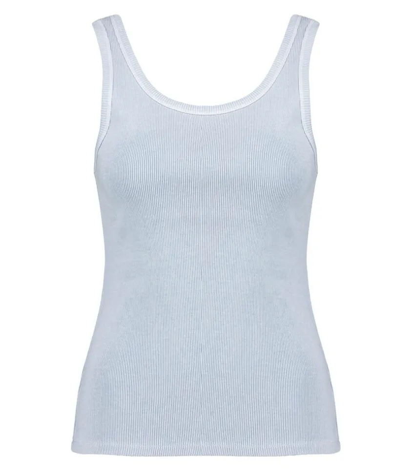 Top Tess Jaspe De La Marque Red Legend, Un Joli Top À La Teinte Bleue Grise Qui S’Impose Comme Un Essentiel De La Garde Robe, À Porter Avec Un Simple Jean Et Des Baskets. Coupe Droite, Col Rond Et Matière Côtelée En Coton.